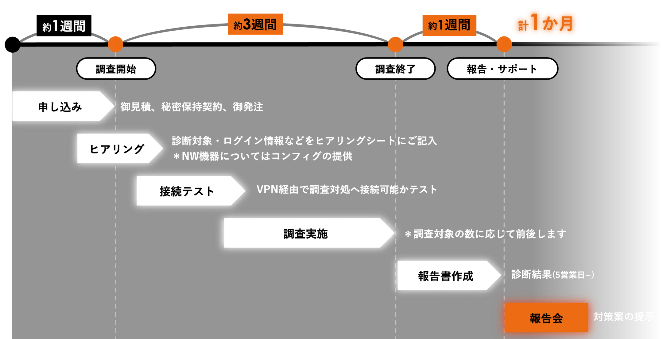 リスクを洗い出し、レポートと報告会で明確に可視化します。